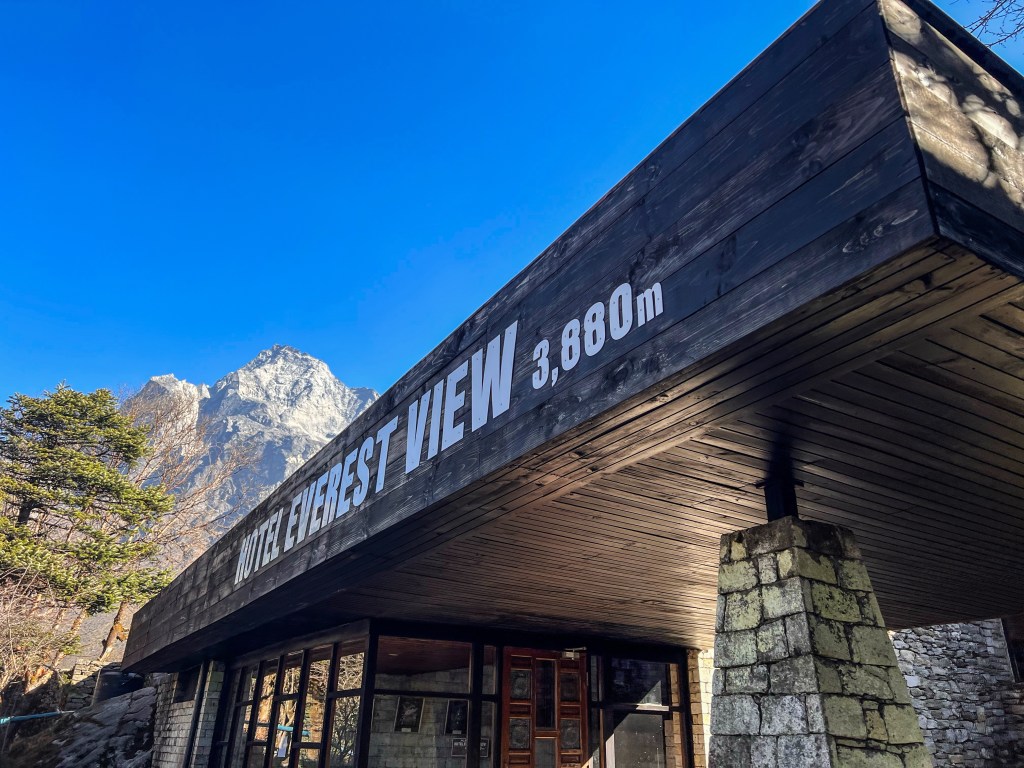 A Sagarmatha régió, más néven az Everest régió, Nepál leglátványosabb és legizgalmasabb területe, amely a világ legmagasabb csúcsát, a Mount Everestet (8848 m) öleli körül. Ezen a varázslatos vidéken található az Everest View Hotel, ahol leszálltunk. A hotel Namche Bazaar közelében, 3,880 méteren fekszik, és ahogy a neve is mutatja, hihetetlen kilátást nyújt a világ tetejére. A szálloda különlegessége, hogy a turisták itt nem csak megpihenhetnek, hanem az Everest, a Lhotse és az Ama Dablam hegyeinek panorámájában is gyönyörködhetnek.
