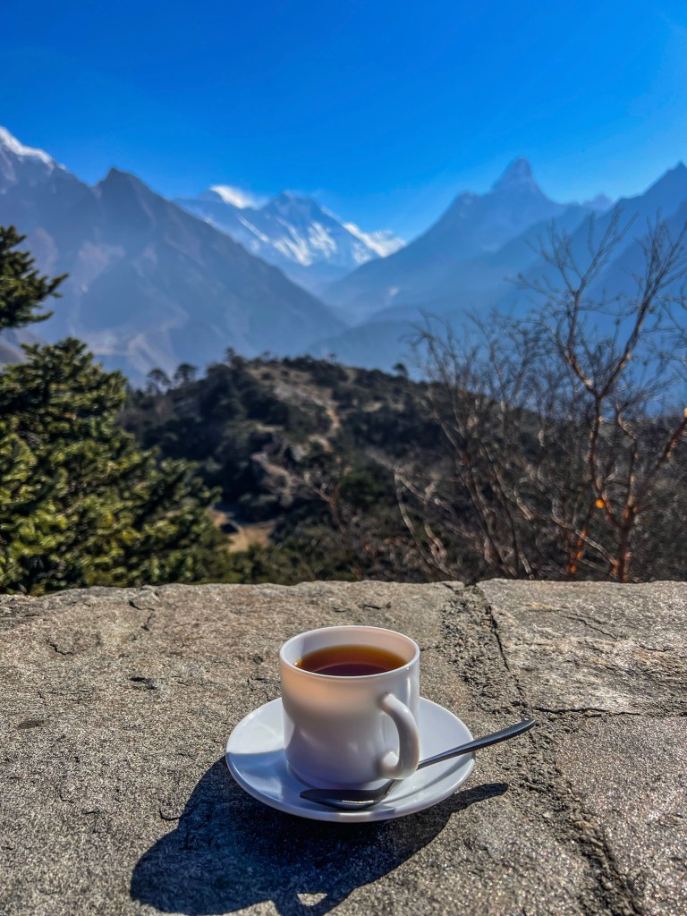 A hotel teraszán egy fantasztikus reggeliben volt részem, miközben az Everest felhőbe burkolózó csúcsának szépségében élvezkedtem. Még néhány órám volt a környék felfedezésére, amit leginkább fotózással és szuvenírek vásárlásával töltöttem.