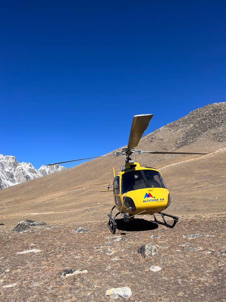 Másnap hajnalban már a repülőtéren voltam, tele izgalommal. Soha nem utaztam helikopterrel, és most végre elérkezett a nap, amikor a világ legmagasabb csúcsaihoz repülhetek. Hosszú ideje vártam erre a pillanatra, hogy megcsodáljam a Himalája lenyűgöző hegyeit.