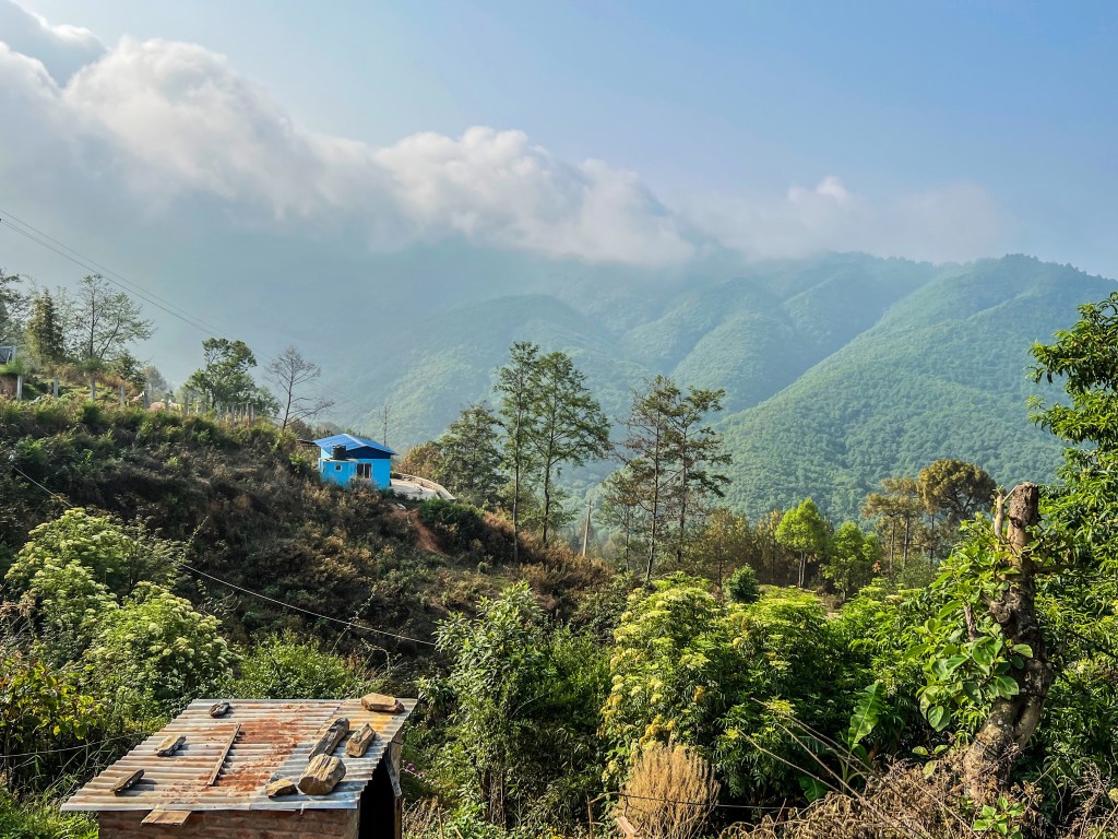 Miután elköszöntem Nagarkot hegyi falujától, a túra kezdetét egy könnyed, de festői ösvényen tettük meg. A környező vidéken friss hegyi levegőt szívva gyalogoltunk, miközben átvágtunk zöldellő rizsföldeken, apró falvakon, és csodálatos erdőkön. Az utunk folyamán számos helyi emberrel találkoztunk, akik munkájukat végezték, gyerekek játszottak a poros utakon, és az egyszerű életmód érezhető volt minden pillanatban. Ettünk helyi reggelit, amit ott sütöttek nekünk a semmi közepén, sőt egy család udvarában készült helyi specialitást a rizsbort is megkóstoltuk.