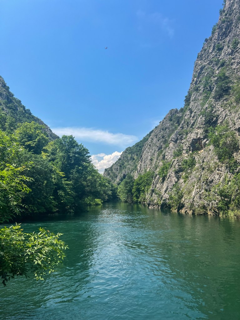A Matka-kanyon Észak-Macedónia egyik legnépszerűbb természeti csodája, ahol a kristálytiszta víz, a meredek sziklafalak és a festői környezet mindenkit elvarázsol. A látogatásomkor különleges élményben volt részem, mivel épp egy kajakverseny zajlott a kanyonban. A rengeteg ember, a versenyzők lelkesedése és a nézők vidám hangulata egészen különlegessé tette a helyet. Bár a kanyon alapvetően csendes, nyugodt hely, ezúttal pezsgő élettel telt meg.