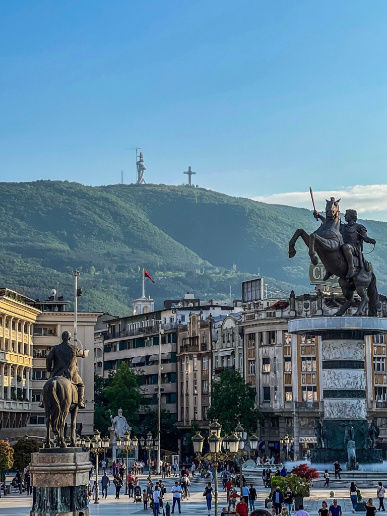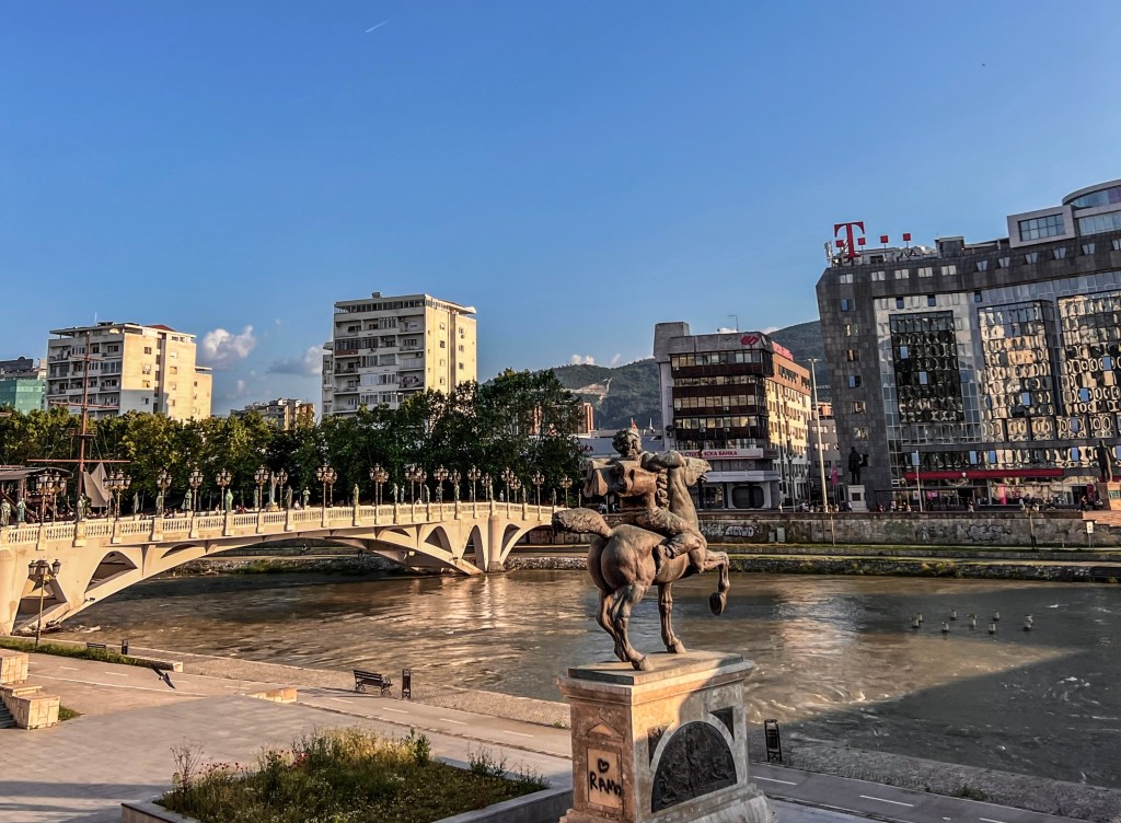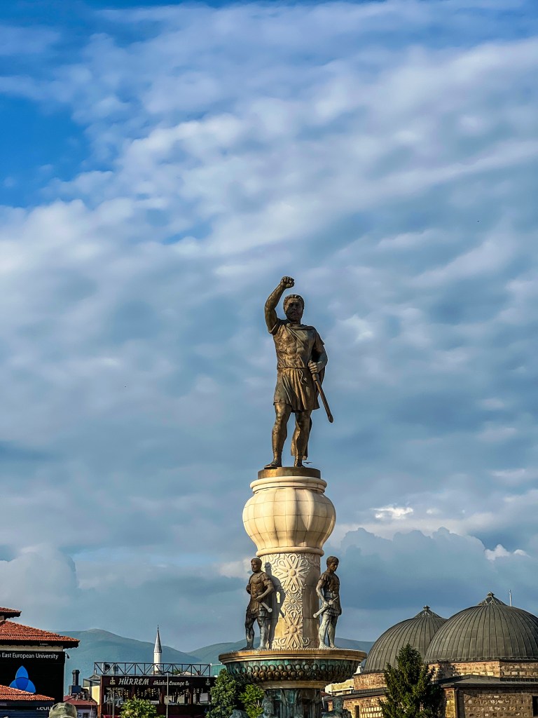 Észak-Macedónia fővárosában, Szkopjéban, az első dolog, ami feltűnik az embernek az a rengeteg szobor. Nem túlzás: a városban több száz szobor áll, amelyek a helyiek identitását, történelmét és kultúráját próbálják meg kifejezni, több-kevesebb sikerrel. A Macedónia tér környéke valóságos szoborerdő, ahol az ember szinte lépten-nyomon valamilyen monumentális alkotásba botlik. Az egyik legimpozánsabb látvány a hatalmas Nagy Sándor lovas szobor, amely magasan a tér fölé emelkedik, és szinte uralja az egész várost.