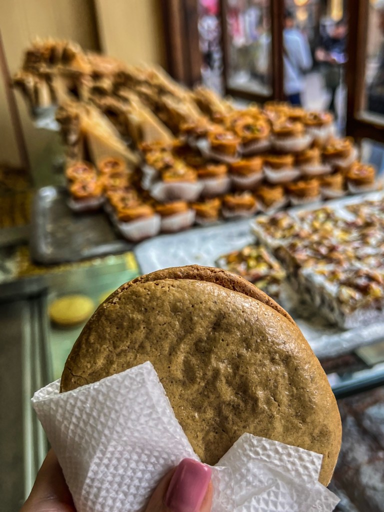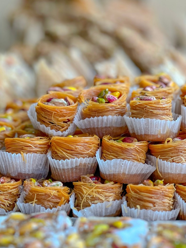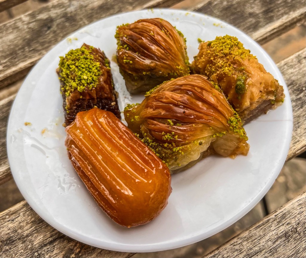 A boltok között apró kávézók bújtak meg, ahol a török kávé lassan főtt a jellegzetes rézedényekben. Beültem egy kis étterembe, hogy megkóstoljam a tipikus ételeket, miközben a bazár lusta macskáit figyeltem, ahogy a napfényben nyújtózkodtak és pihentek. A finomságok közben persze nem tudtam ellenállni, és a legtöbb falatot nekik adtam – mintha tudták volna, hogy nálam biztosan számíthatnak egy kis jutalomra. Az étel ínycsiklandó volt, egyszerű, mégis tele ízekkel. Természetesen baklava nélkül nem lett volna teljes a napom, hiszen nagy rajongója vagyok ennek a híres édességnek, így minden falatját élveztem, amíg csak bírtam.