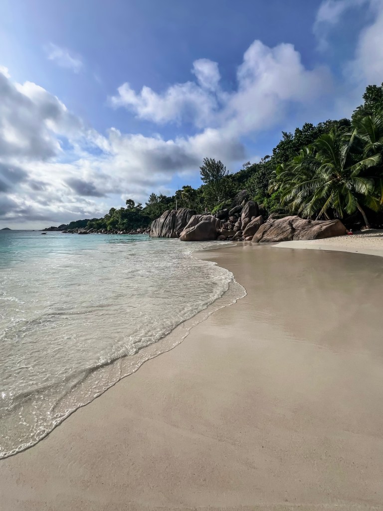 A part mentén végig hófehér homok húzódik, amely finom és puha. A gránitsziklák közötti kis öblök nagyon intim hangulatot árasztanak, így könnyű megtalálni a saját, nyugodt kis helyedet, ahol zavartalanul élvezheted a természet szépségét. A víz sekély és meleg, így órákig lehet bóklászni benne, miközben a lábad körül színes halak úszkálnak. Az egyik legszebb hely, ahol valaha jártam.