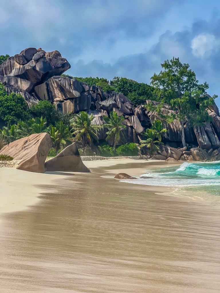 Az Anse Source d’Argent minden képzeletet felülmúl. A strandot hatalmas, simára csiszolt gránitsziklák szegélyezik, amelyek olyan formákat öltenek, mintha maga a természet szobrászmestere faragta volna őket.