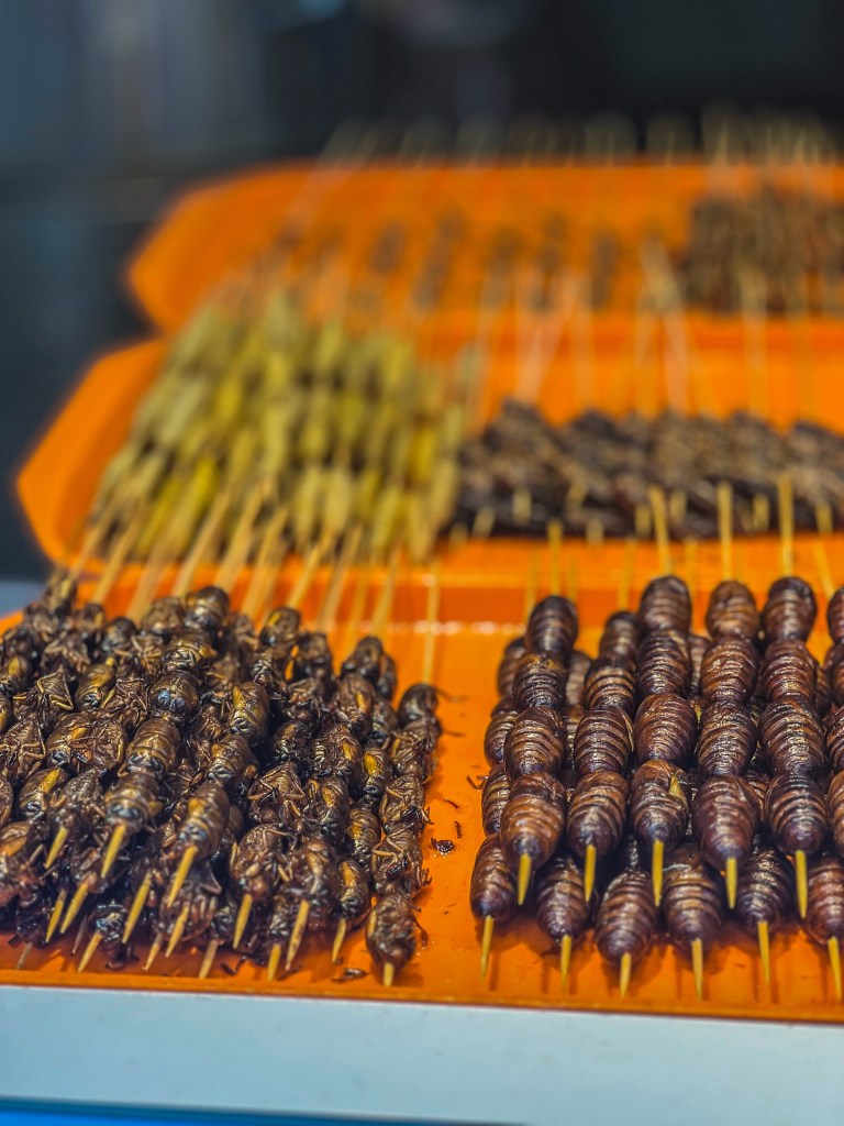 Az étkezések Kínában teljesen mások, mint amit az európai kínai éttermekben megszoktunk. Itt minden fogás autentikus, és teljesen eltér attól, amit otthon kínai konyhaként ismerünk. Sokszor nehezen viseltük a szokatlan szagokat, amelyek az utcai kifőzdék és kis éttermek környékén terjengtek. A helyi piacokon található fogások pedig egyértelműen nem az európai gyomorhoz lettek igazítva: például skorpiók, rovarok és különféle belsőségek is az árusok asztalán sorakoztak.