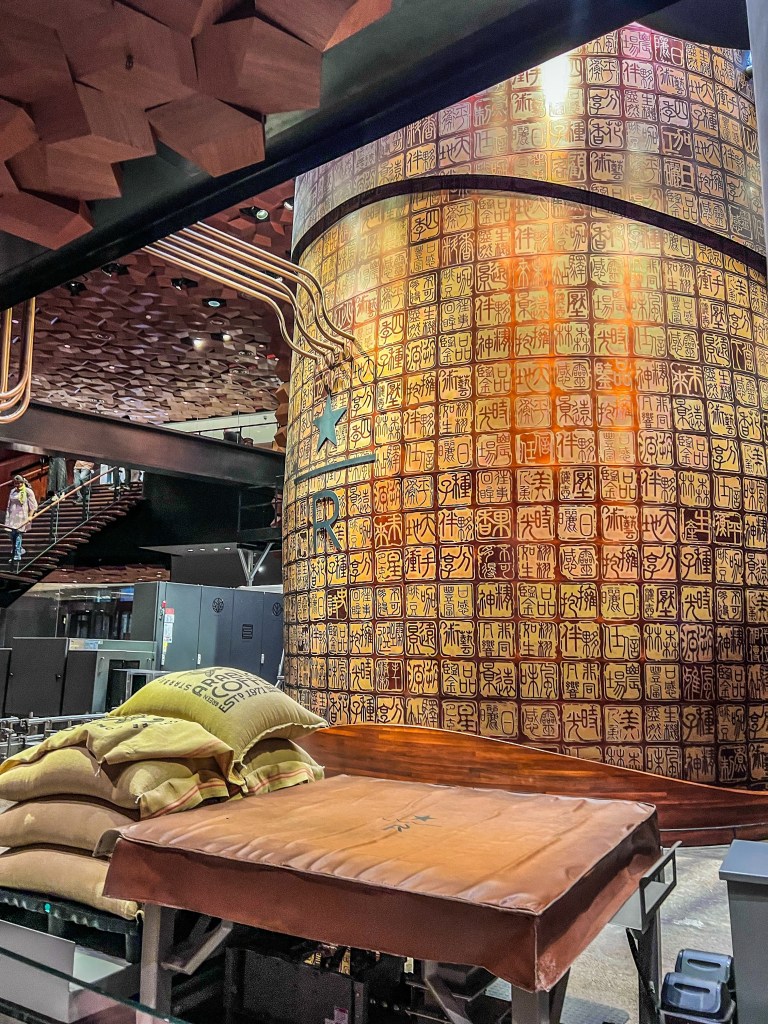 Bár nem vagyok Starbucks-rajongó, ezt a helyet muszáj volt megnézni. Shanghai ad otthont a világ második legnagyobb Starbucksának, a Reserve Roastery-nek, ami inkább egy kávémúzeum, mint egyszerű kávézó.