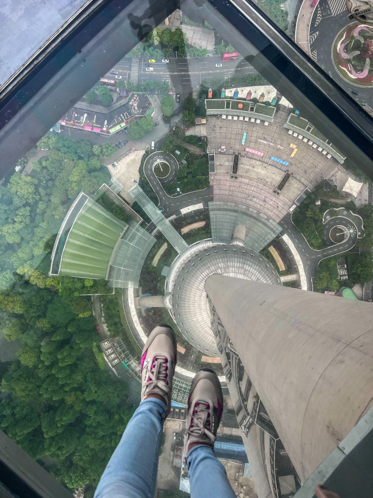 Hajóra szálltunk, hogy a Huangpu-folyón átkeljünk a modern Pudong negyedbe, ahol Shanghai ikonikus tornyai magasodnak. A vízről láthattuk a város két arcát: az egyik oldalon a Bund történelmi épületei, a másik oldalon pedig Pudong felhőkarcolói emelkedtek az ég felé. Shanghai látképének egyik legismertebb eleme az Oriental Pearl TV-torony. A torony tetejéről lélegzetelállító kilátás nyílik a városra. A legizgalmasabb számomra az üvegpadlós rész volt. Ha szereted a magasságot, ez a hely kötelező program! Innen ráláttunk a Shanghai Towerre is, amely Kína legmagasabb épülete, 632 méteres magasságával és 128 emelettel, és a világ harmadik legmagasabb épülete.