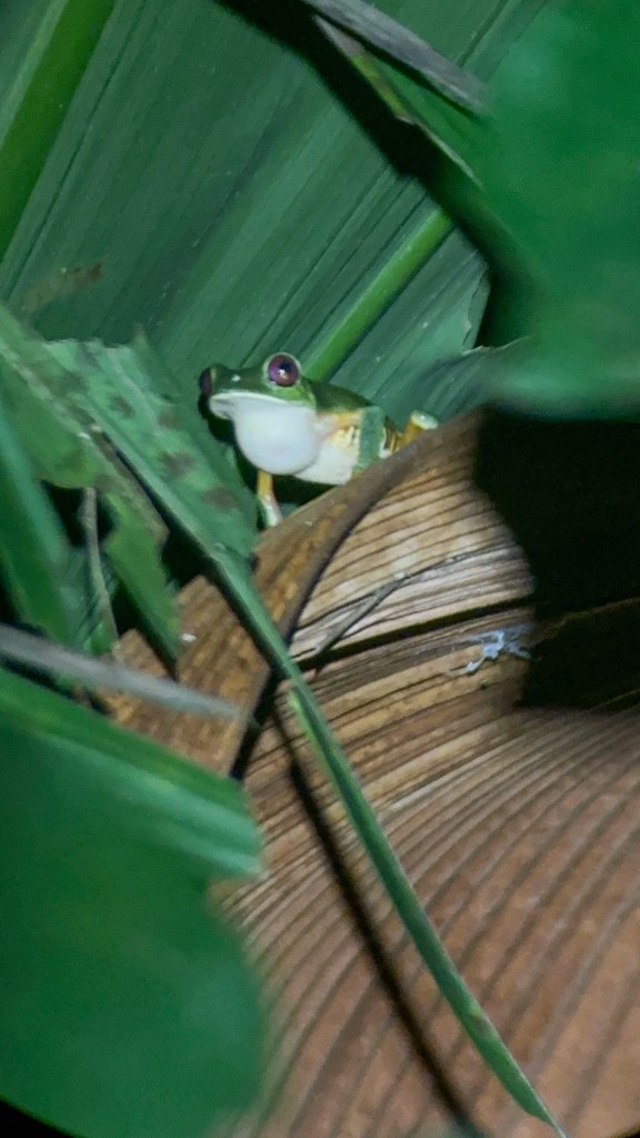 Amint besötétedett, elindultam egy éjszakai túrára is, amit egyszerűen imádtam. Vezetővel indultam útnak, és volt még néhány amerikai turista is a csoportban, akik szintén izgatottan várták, mi rejlik a sötétben. Az elemlámpával és fejlámpával megvilágított dzsungel egy teljesen új világot mutatott. A fák között apró, világító rovarok repkedtek, miközben békák, pókok és skorpiók rejtőzködtek a faágak között. Az egyik legnagyobb meglepetés egy hatalmas krokodil volt. Az egész program egyszerűen lenyűgözött – soha nem gondoltam volna, hogy ilyen közel kerülhetek a természethez, és ennyire élesben láthatom mindazt, ami a nappali órákban rejtve marad.