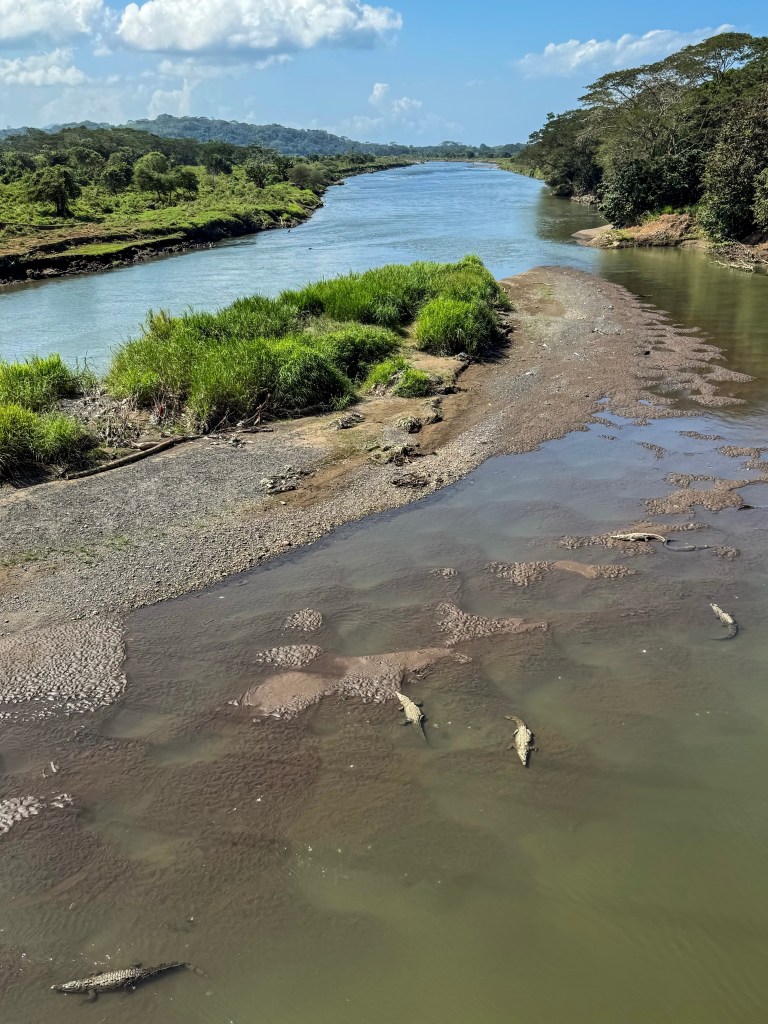 A következő célpontom Manuel Antonio volt, de útközben megálltam a Tarcolés hídnál egy rövid kitérőre. Ha valaha is szerettél volna krokodilokat látni a természetes élőhelyükön, ez a tökéletes hely. A hatalmas, ősi hüllők nyugodtan heverésztek a folyóparton, mintha észre sem vennék a kíváncsi turistákat. A híd közelében több bódé is található, ahol szuveníreket lehet vásárolni, és friss ételt, italokat kínálnak a látogatóknak.
